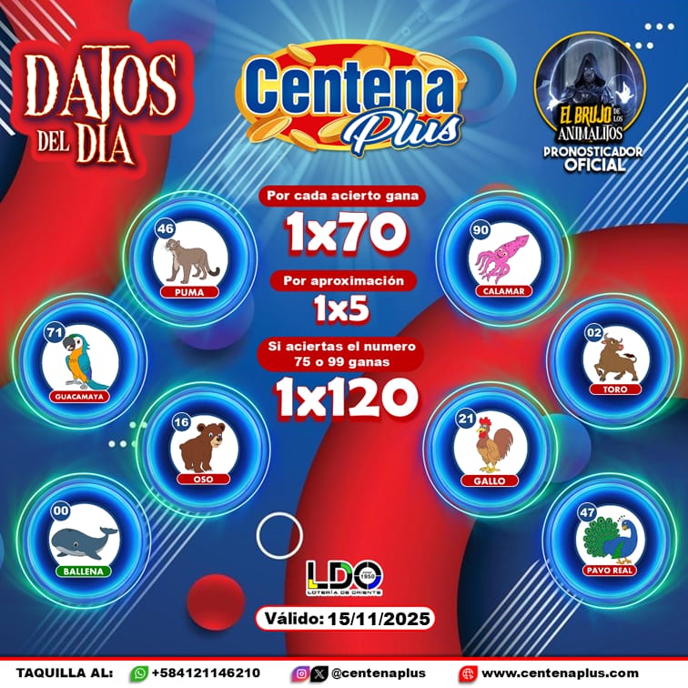 Pronosticos Pronósticos para Centena Plus hoy Sábado 15-11-2025 Nov 15, 2025 El Brujo de Los Animalitos