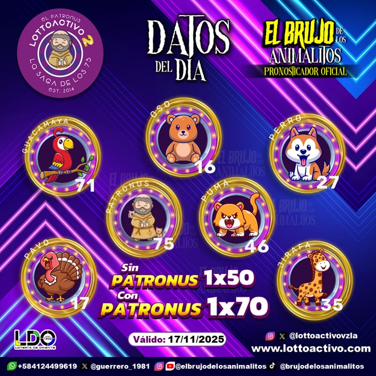 Pronosticos Pronósticos para Lotto Activo hoy Lunes 17-11-2025 Nov 17, 2025 El Brujo de Los Animalitos