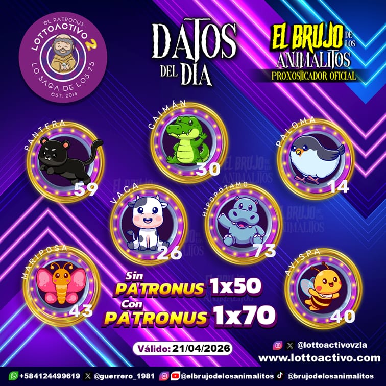 Pronosticos Pronósticos para Trio Activo El Patronus hoy Lunes 06-04-2026 Abr 6, 2026 El Brujo de Los Animalitos