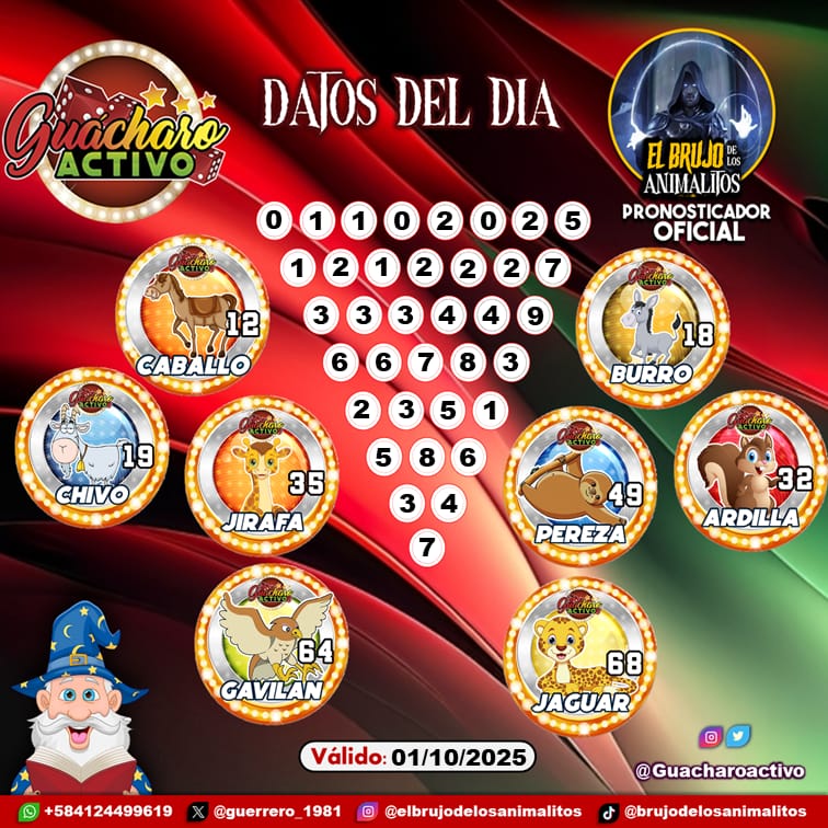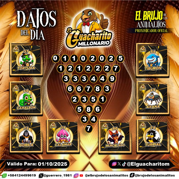Pronósticos para El Guacharito Millonario hoy Miércoles 01-10-2025 Oct 1, 2025 El Brujo de Los Animalitos