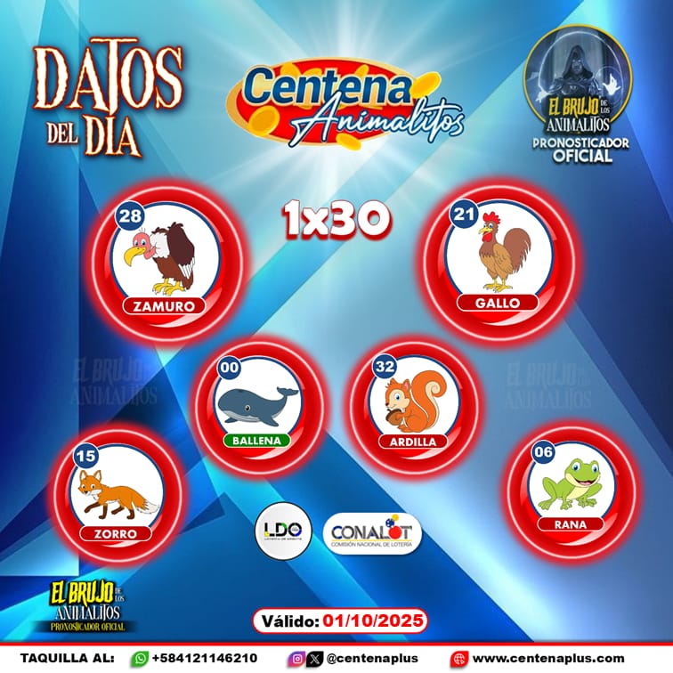 Pronósticos para Chance con Animalitos hoy Miércoles 01-10-2025 Oct 1, 2025 El Brujo de Los Animalitos