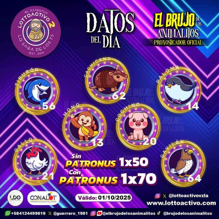 Pronósticos para Trio Activo El Patronus hoy Miércoles 01-10-2025 Oct 1, 2025 El Brujo de Los Animalitos