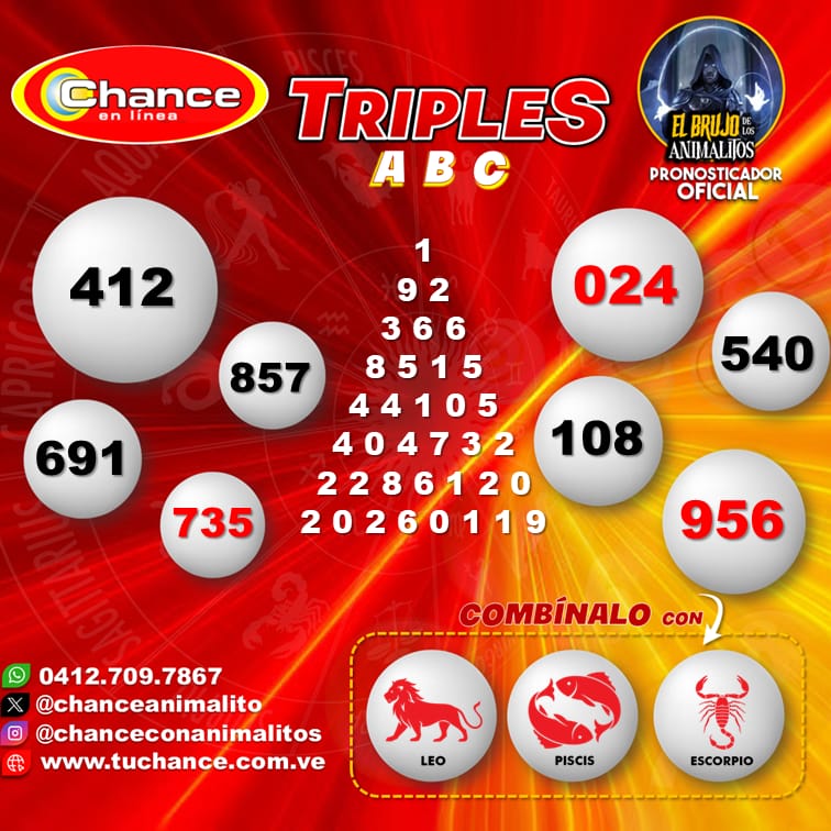 Pronosticos Pronósticos para Triple Fácil hoy Miércoles 01-10-2025 Oct 1, 2025 El Brujo de Los Animalitos
