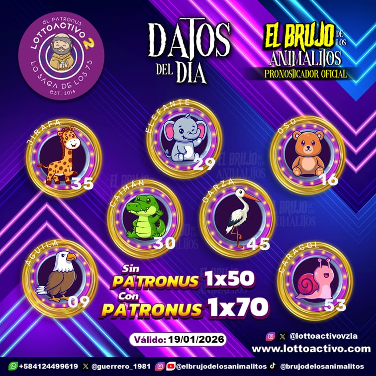 Pronósticos para Trio Activo El Patronus hoy Lunes 19-01-2026 Ene 18, 2026 El Brujo de Los Animalitos