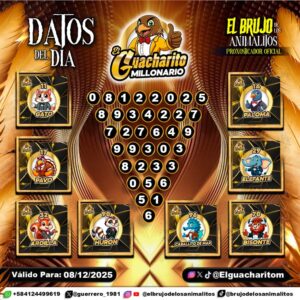 Pronósticos para El Guacharito Millonario hoy Lunes 08-12-2025