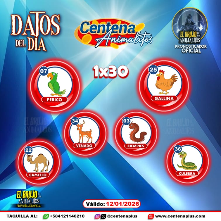 Pronósticos para Centena Animalitos hoy Lunes 12-01-2026