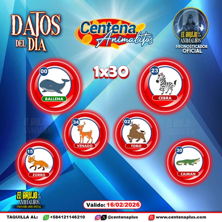 Pronósticos para Centena Animalitos hoy Lunes 16-02-2026