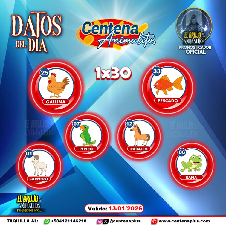 Pronósticos para Centena Animalitos hoy Martes 13-01-2026