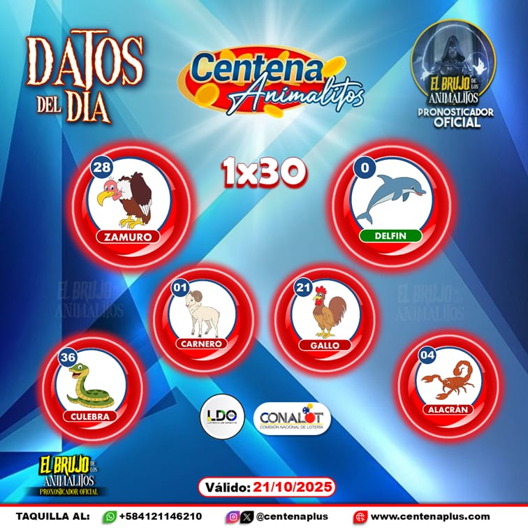 Pronósticos para Trio Activo El Patronus hoy Martes 21-10-2025 Oct 21, 2025 El Brujo de Los Animalitos