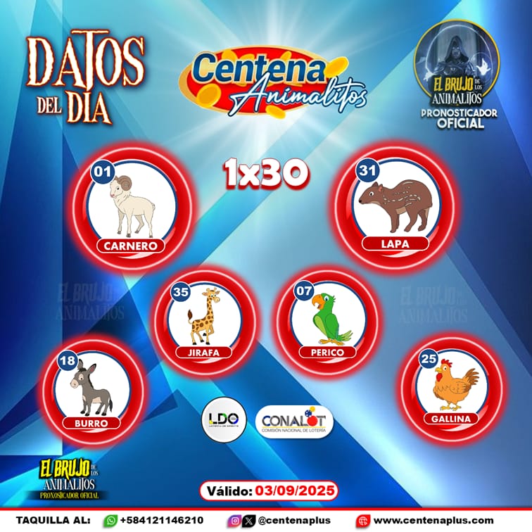 Pronósticos para Centena Animalitos hoy Miércoles 03-09-2025