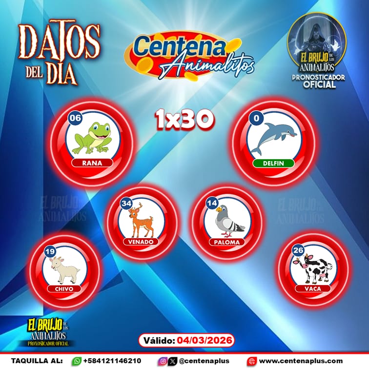 Pronósticos para Centena Animalitos hoy Miércoles 04-03-2026