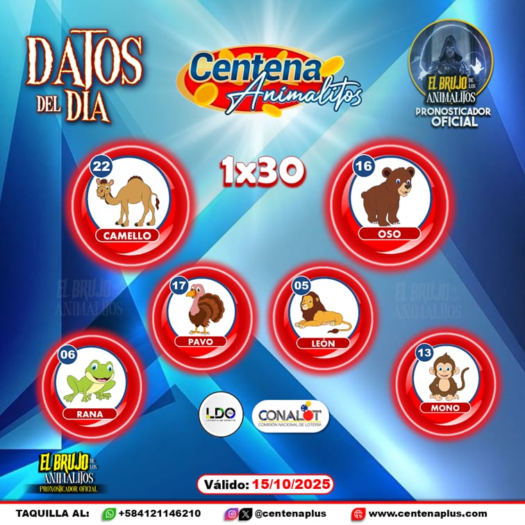 Pronósticos para Chance con Animalitos hoy Miércoles 15-10-2025 Oct 15, 2025 El Brujo de Los Animalitos