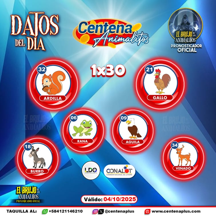 Pronósticos para Centena Animalitos hoy Sábado 04-10-2025