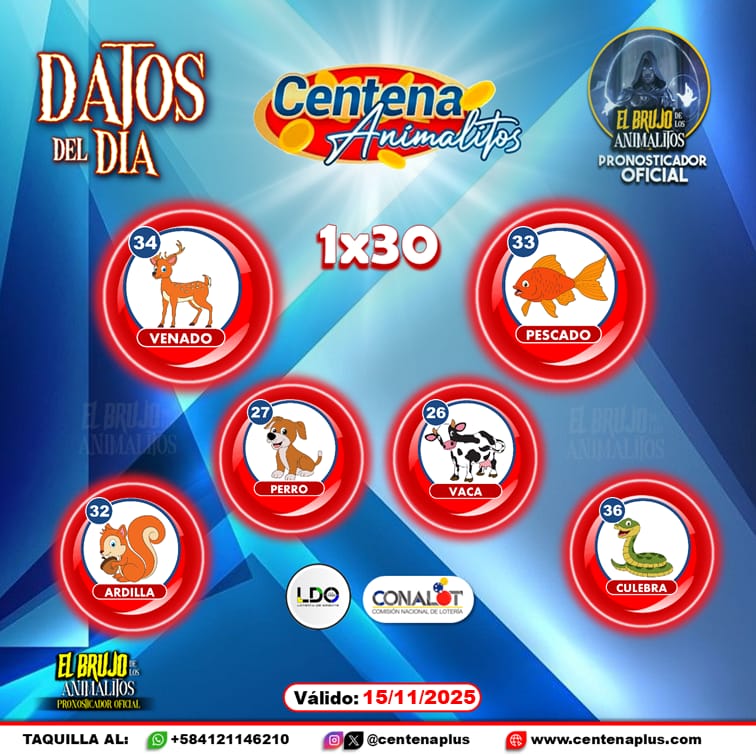 Pronósticos para Centena Animalitos hoy Sábado 15-11-2025
