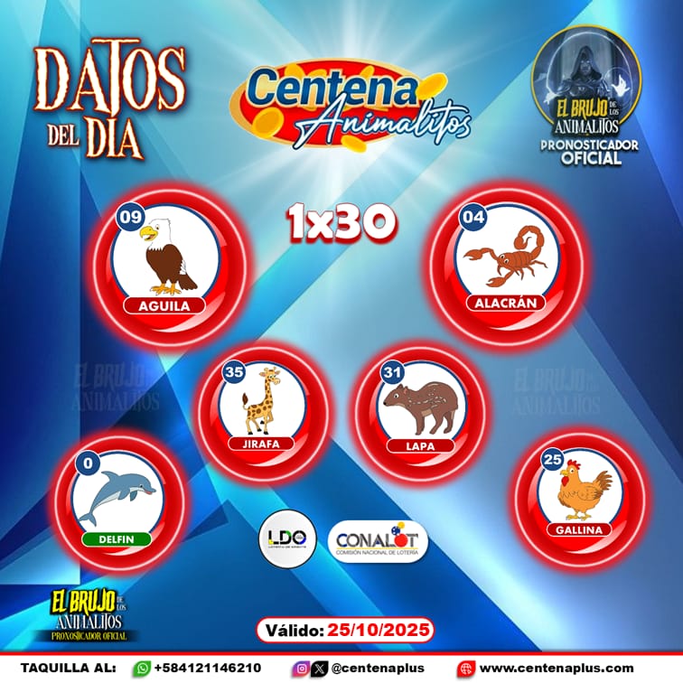 Pronósticos para Centena Animalitos hoy Sábado 25-10-2025