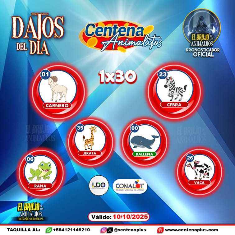 Pronósticos para Centena Animalitos hoy Viernes 10-10-2025