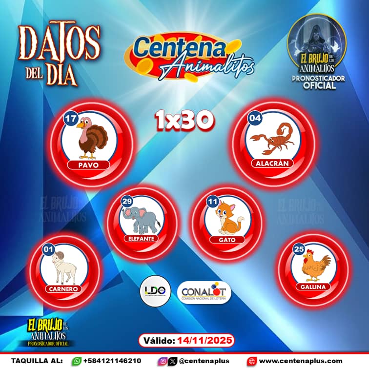 Pronósticos para Centena Animalitos hoy Viernes 14-11-2025