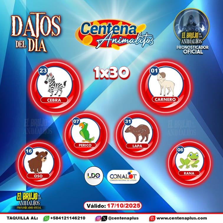 Pronósticos para Centena Animalitos hoy Viernes 17-10-2025