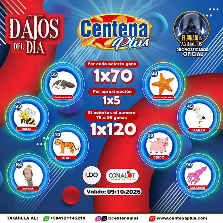 Navegación de entradas Pronósticos para Centena Animalitos hoy Jueves 09-10-2025 Pronósticos para Chance con Animalitos hoy Jueves 09-10-2025