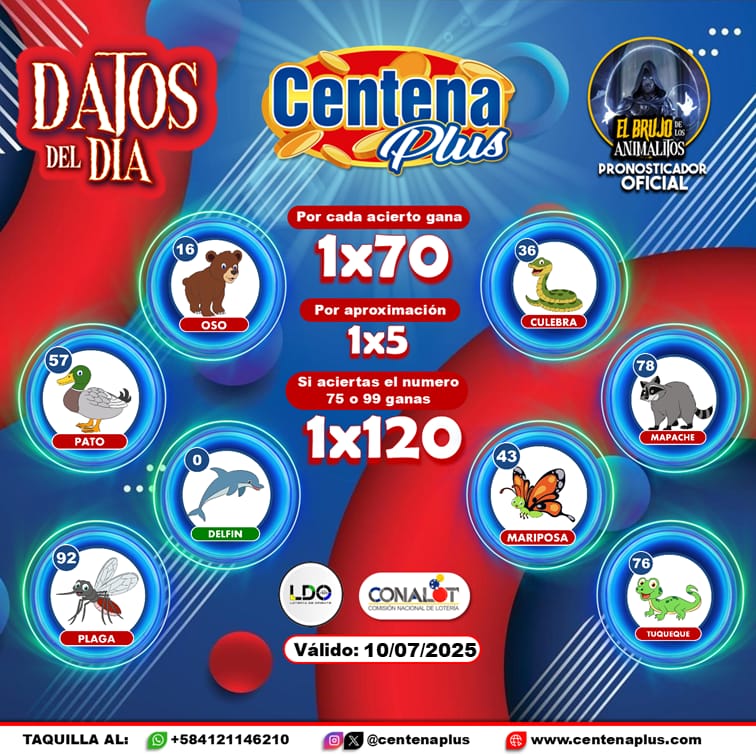 Navegación de entradas Pronósticos para Centena Animalitos hoy Jueves 10-07-2025 Pronósticos para Triple Popular hoy Jueves 10-07-2025