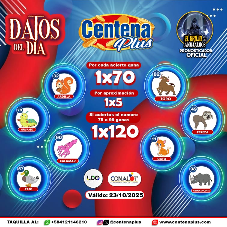 Pronósticos para Centena Plus hoy Jueves 23-10-2025