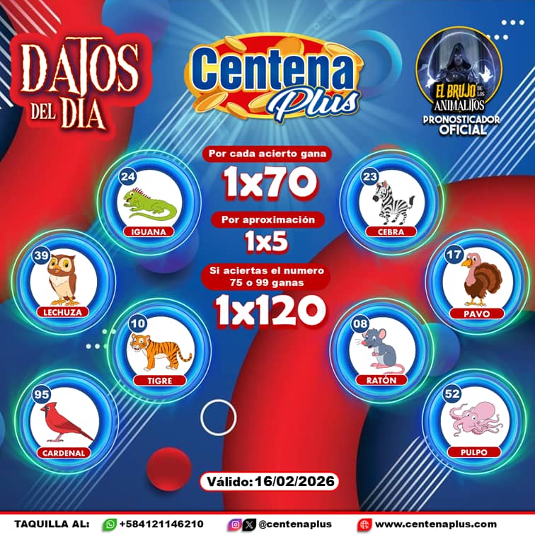 Pronósticos para Centena Plus hoy Lunes 16-02-2026
