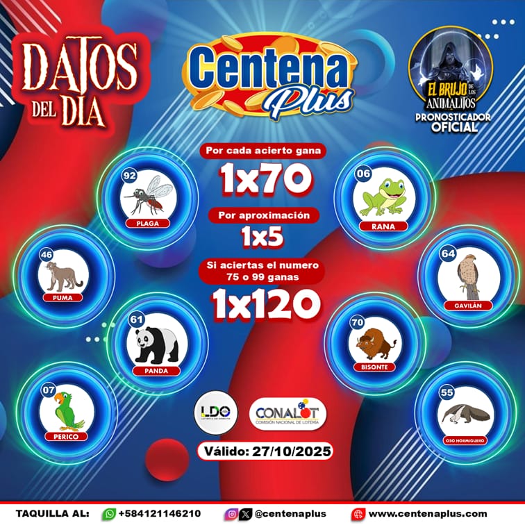 Navegación de entradas Pronósticos para Centena Animalitos hoy Lunes 27-10-2025 Pronósticos para Chance con Animalitos hoy Lunes 27-10-2025