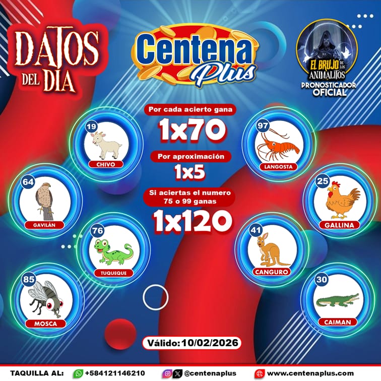 Pronósticos para Centena Plus hoy Martes 10-02-2026