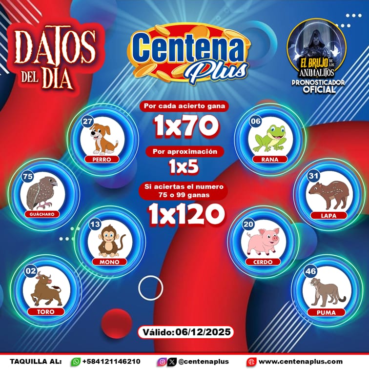 Pronósticos para Centena Plus hoy Sábado 06-12-2025