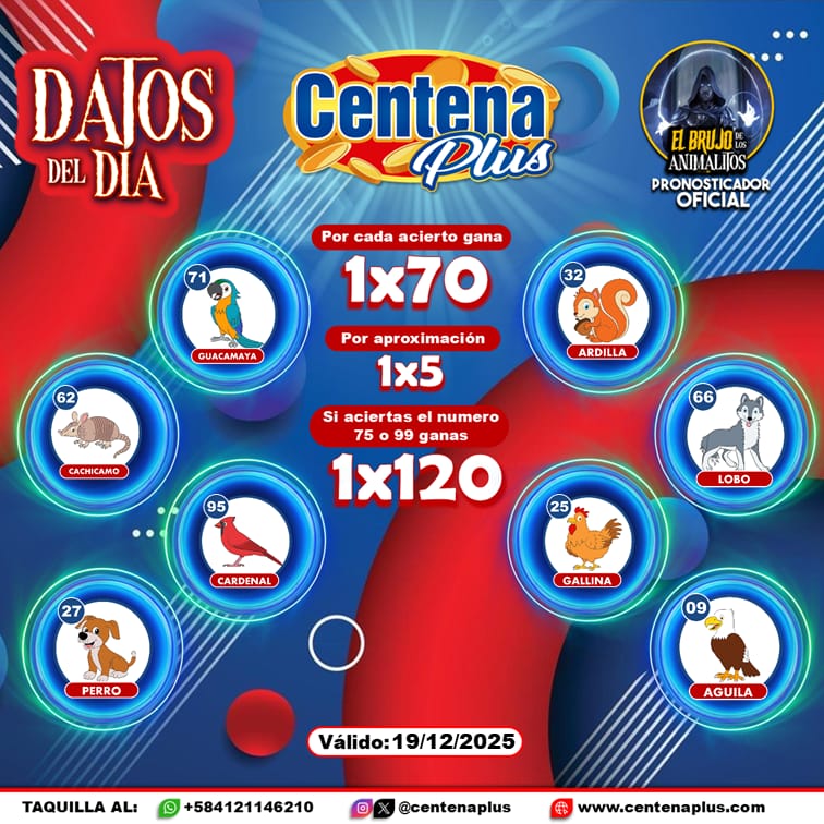 Pronósticos para Centena Plus hoy Viernes 19-12-2025