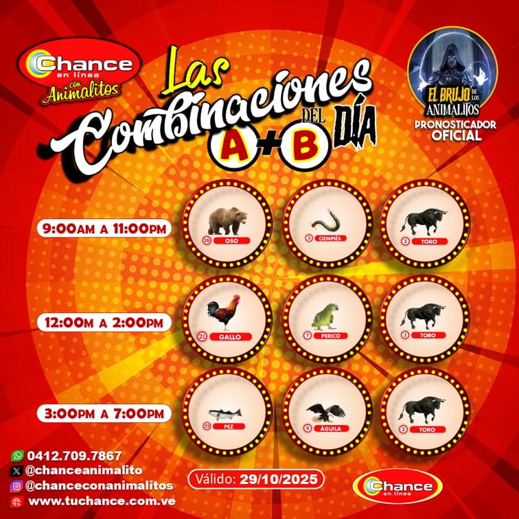 Pronósticos para Chance con Animalitos hoy Miércoles 29-10-2025 Oct 28, 2025 El Brujo de Los Animalitos