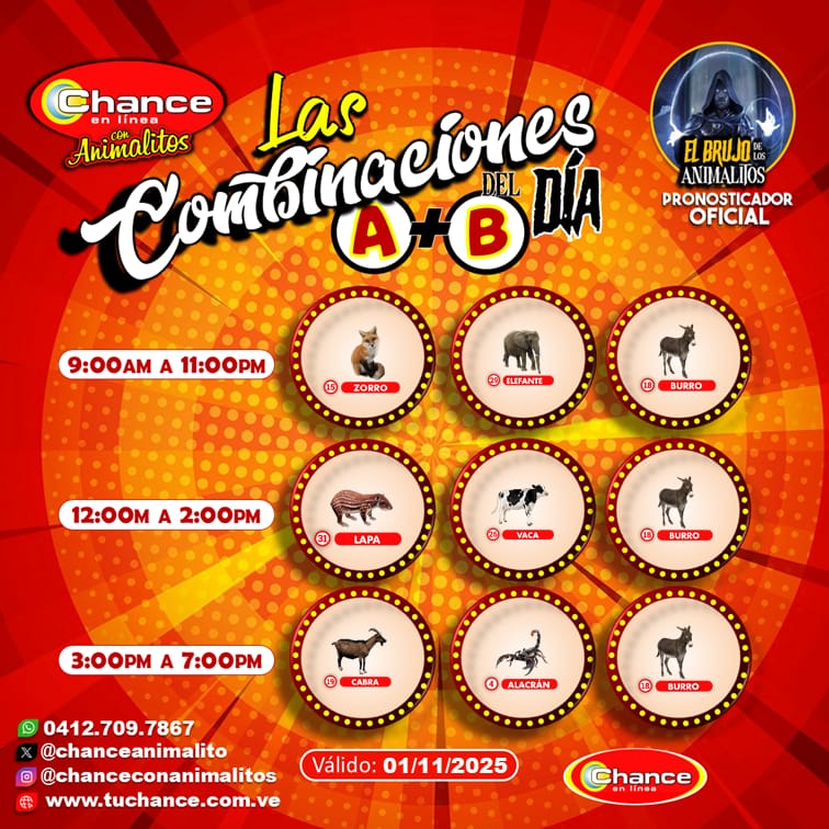 Pronósticos para Chance con Animalitos hoy Sábado 01-11-2025