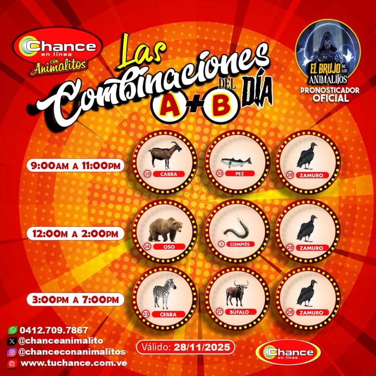 Pronósticos para Chance con Animalitos hoy Viernes 28-11-2025