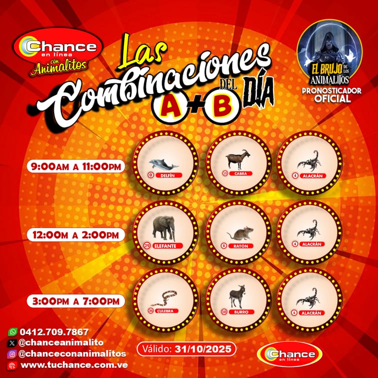Pronósticos para Chance con Animalitos hoy Viernes 31-10-2025 Oct 31, 2025 El Brujo de Los Animalitos