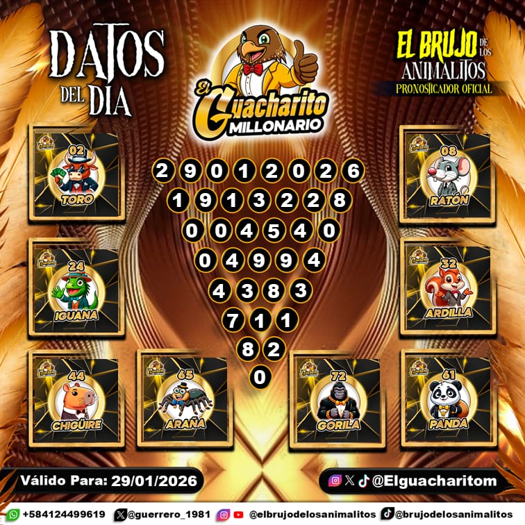 Pronósticos para El Guacharito Millonario hoy Jueves 29-01-2026