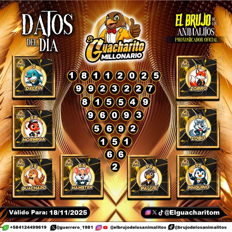 Pronósticos para El Guacharito Millonario hoy Martes 18-11-2025