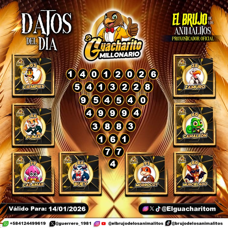 Pronósticos para El Guacharito Millonario hoy Miércoles 14-01-2026