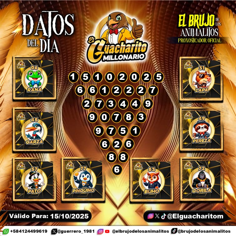 Pronósticos para Chance con Animalitos hoy Miércoles 15-10-2025 Oct 15, 2025 El Brujo de Los Animalitos
