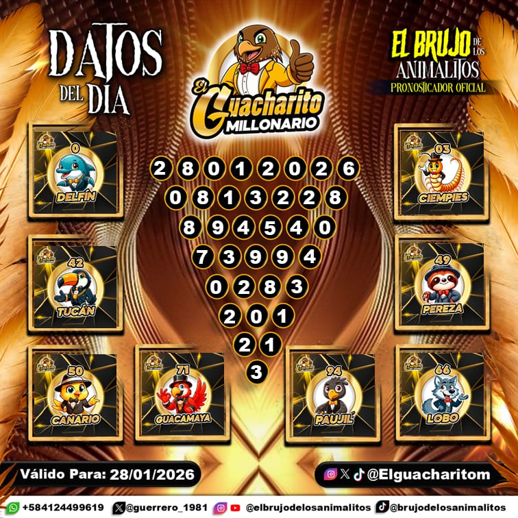 Pronósticos para El Guacharito Millonario hoy Miércoles 28-01-2026