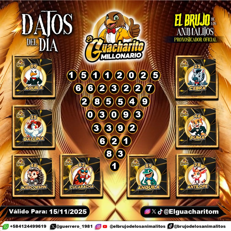 Pronósticos para El Guacharito Millonario hoy Sábado 15-11-2025