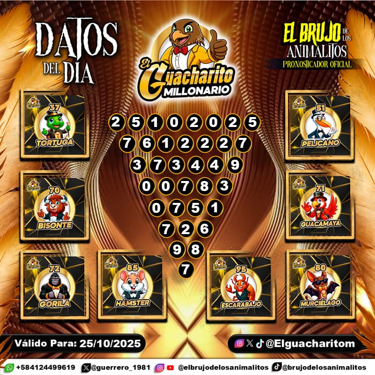 Pronósticos para El Guacharito Millonario hoy Sábado 25-10-2025