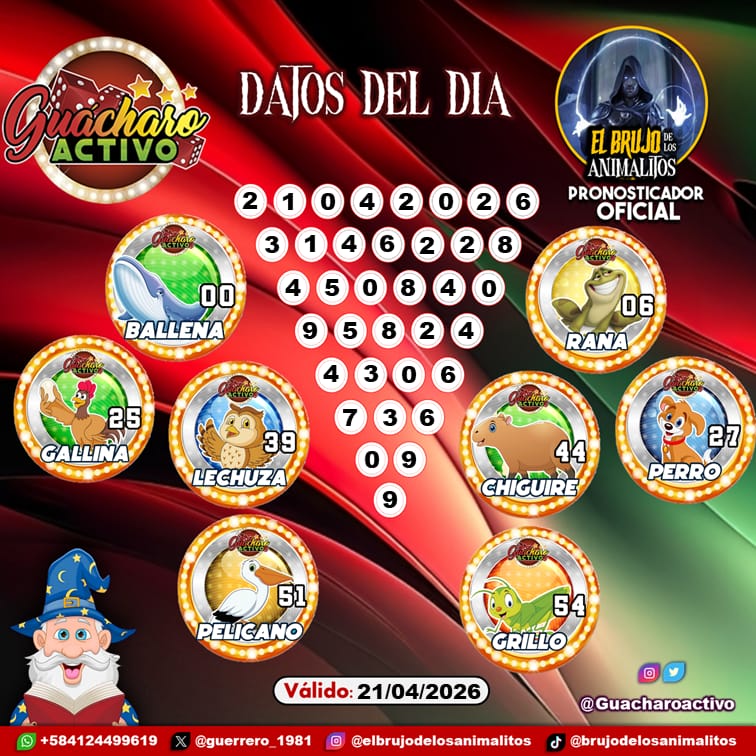 Navegación de entradas Pronósticos para Lotto Activo hoy Martes 21-04-2026 Pronósticos para El Guacharito Millonario hoy Martes 21-04-2026