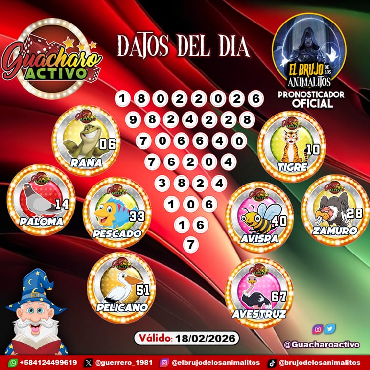 Pronósticos para Trio Activo El Patronus hoy Miércoles 18-02-2026 Feb 18, 2026 El Brujo de Los Animalitos