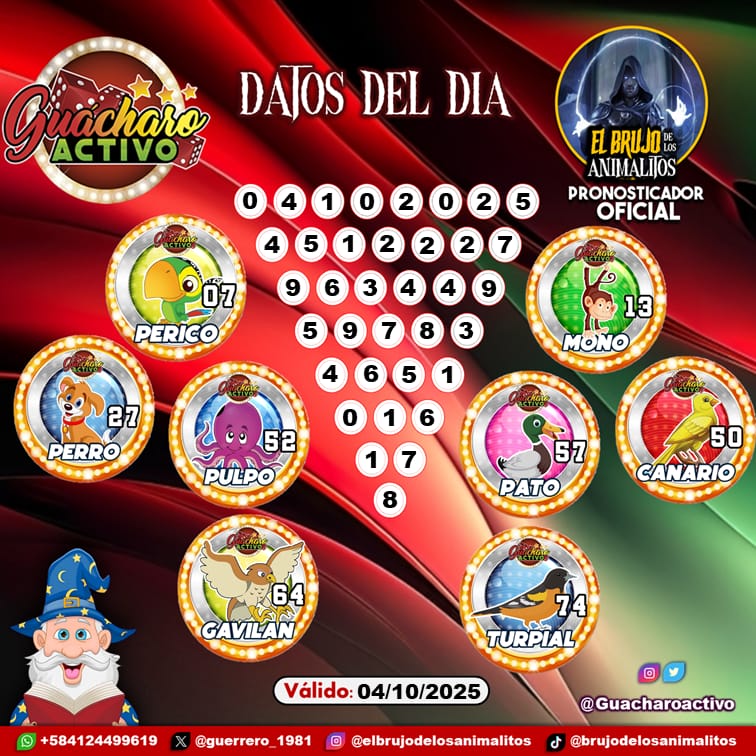 Navegación de entradas Pronósticos para Lotto Activo hoy Sábado 04-10-2025 Pronósticos para El Guacharito Millonario hoy Sábado 04-10-2025