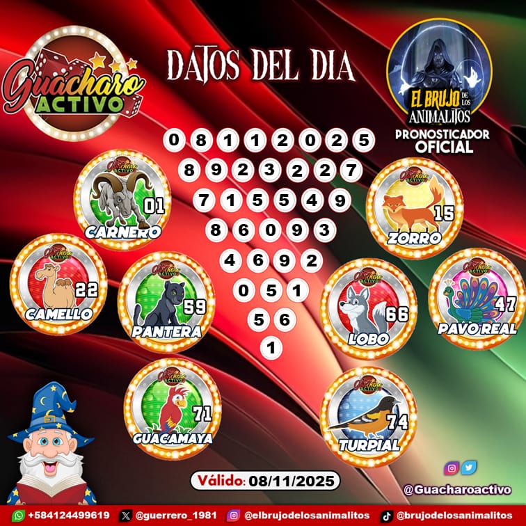Navegación de entradas Pronósticos para Lotto Activo hoy Sábado 08-11-2025 Pronósticos para El Guacharito Millonario hoy Sábado 08-11-2025