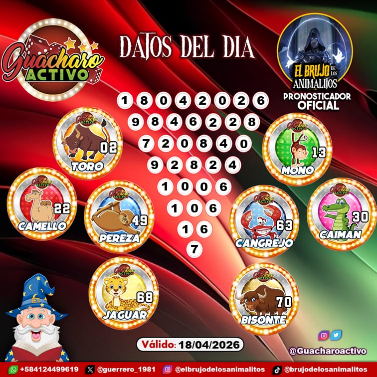 Navegación de entradas Pronósticos para Lotto Activo hoy Sábado 18-04-2026 Pronósticos para El Guacharito Millonario hoy Sábado 18-04-2026