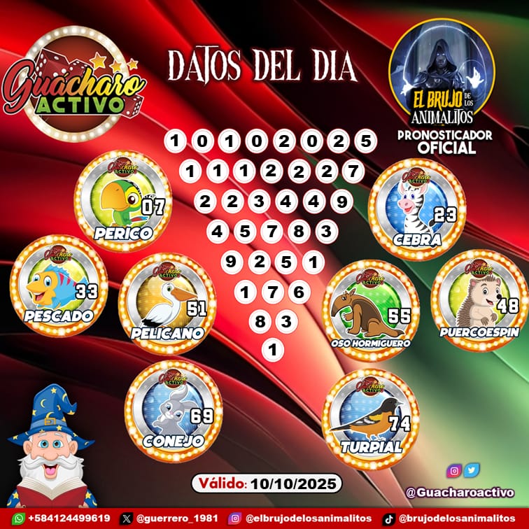 Navegación de entradas Pronósticos para Lotto Activo hoy Viernes 10-10-2025 Pronósticos para El Guacharito Millonario hoy Viernes 10-10-2025