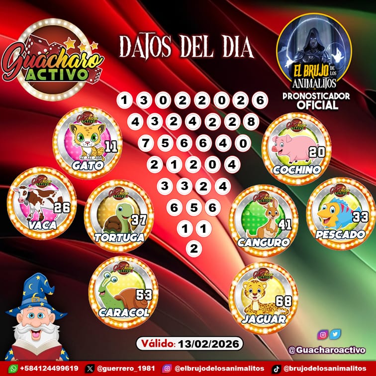 Pronósticos para Chance con Animalitos hoy Viernes 13-02-2026 Feb 13, 2026 El Brujo de Los Animalitos