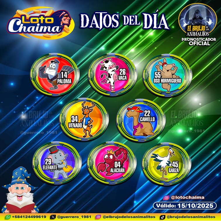 Pronósticos para Chance con Animalitos hoy Miércoles 15-10-2025 Oct 15, 2025 El Brujo de Los Animalitos