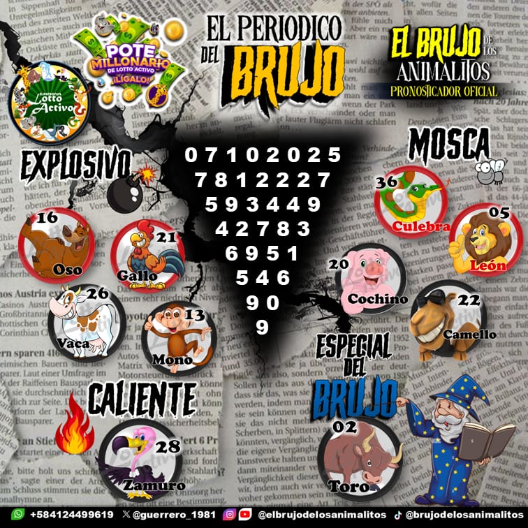Pronósticos para Trio Activo El Patronus hoy Martes 07-10-2025 Oct 7, 2025 El Brujo de Los Animalitos